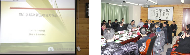 鄂尔多斯高新区规划面积 132 平方公里,于 2011 年 5 月开始筹建,为自治区级高新技术产业开发区。2014 年年初,绿色经济协会与鄂尔多斯高新区建立全方位战略合作模式,重点发展由新能源、节能环保、清洁煤技术和云计算、智能装备、新材料、生物医药、现代服务业组合而成的“3+5”产业,打造高新区创新型经济和服务型经济并举的发展格局。通过智库组建、产业招商、国际合作及品牌传播等举措,将鄂尔多斯高新区向国家级高新技术产业开发区打造,并实现协会高新技术落地企业超 10 家,其中成功引进世界 500 强企业 2 家。