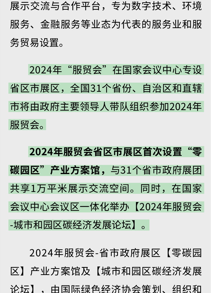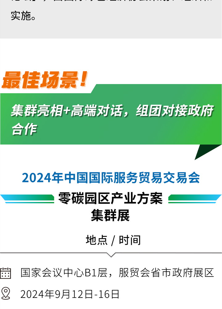 征集“零碳园区”解决方案,对接全国31省市政府—集群亮相2024年“服贸会”