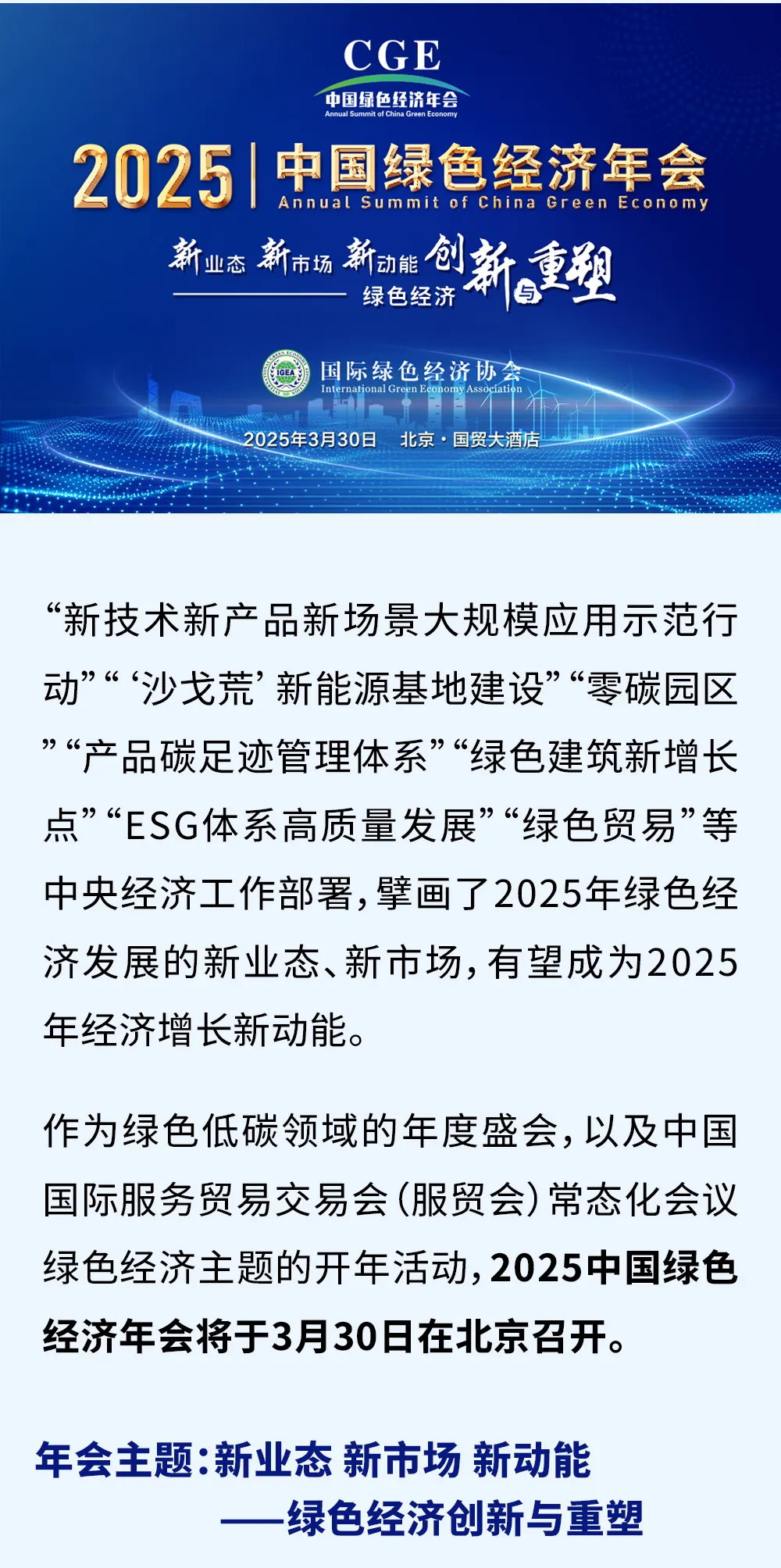 2025中国绿色经济年会将于3月30日在北京召开,聚焦绿色经济新业态新市场新动能